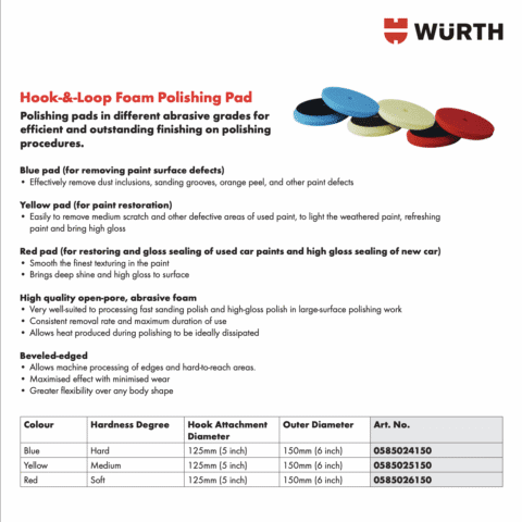 Rp2.650.000WURTH 5″ inch Hook-&-Loop Foam Light Soft Polishing Red Pad 125/150 mm – Busa Mesin Poles Merah