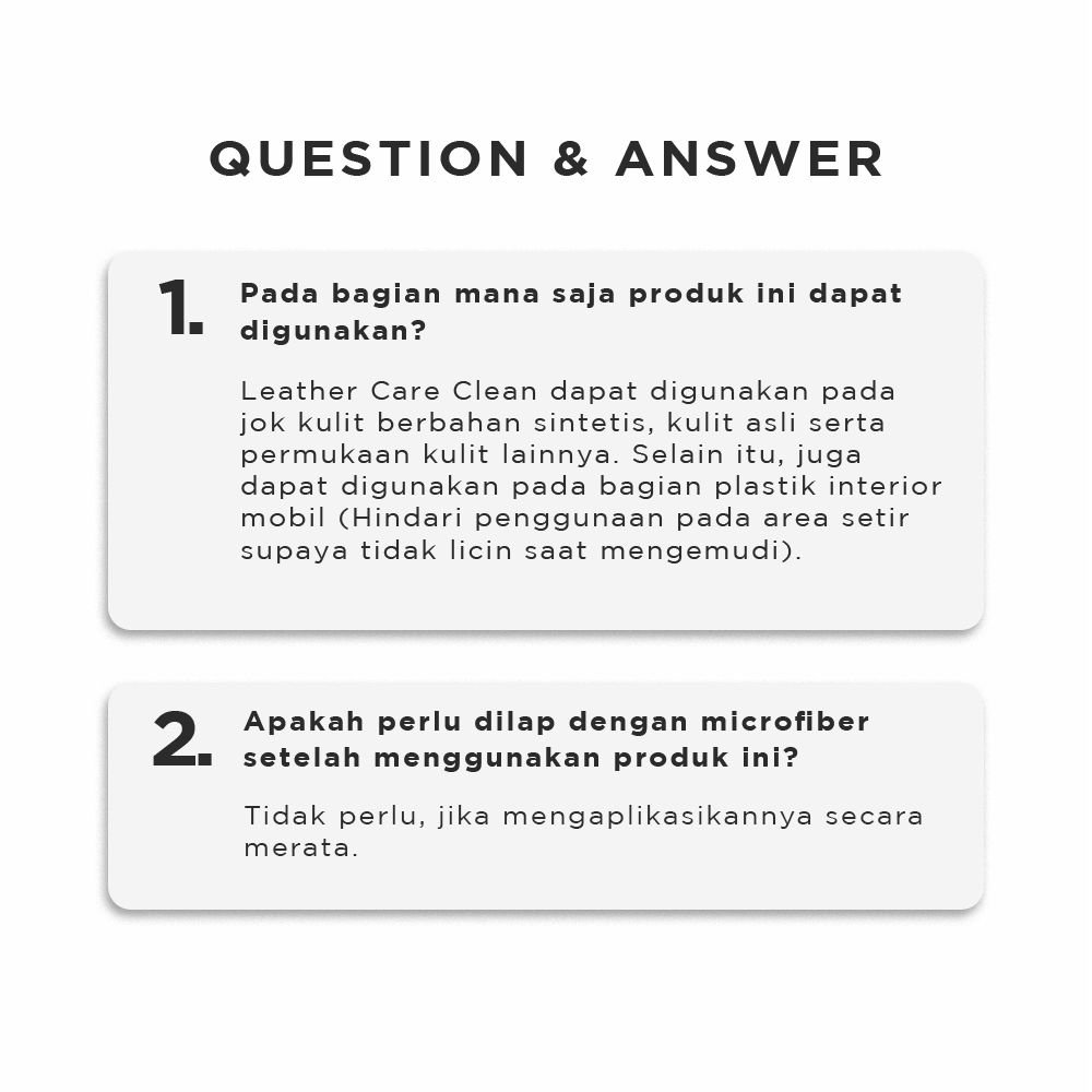 Formula yang efektif untuk mengkilapkan dan melindungi permukaan bagian jok kulit, sintetis, vinil maupun karet dan juga menunda penuaan.