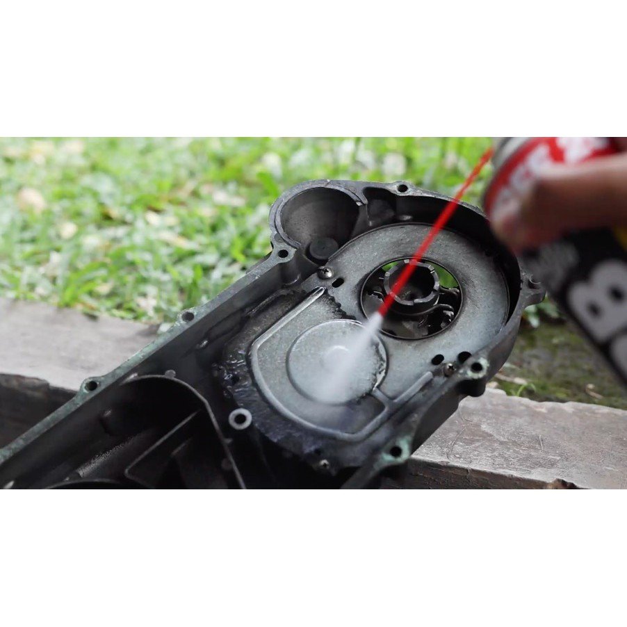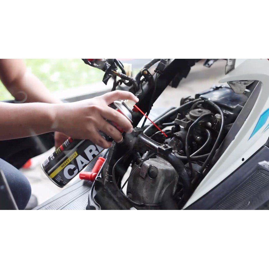 – Membersihkan kotoran, deposit karbon, minyak didalam maupun diluar karburator tanpa perlu membongkarnya.