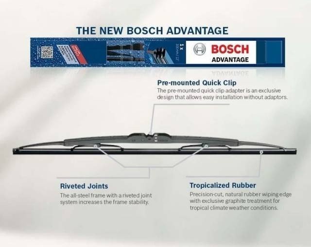 Wiper Bosch Advantage dengan desain konvensional terpercaya untuk performa sapuan prima.