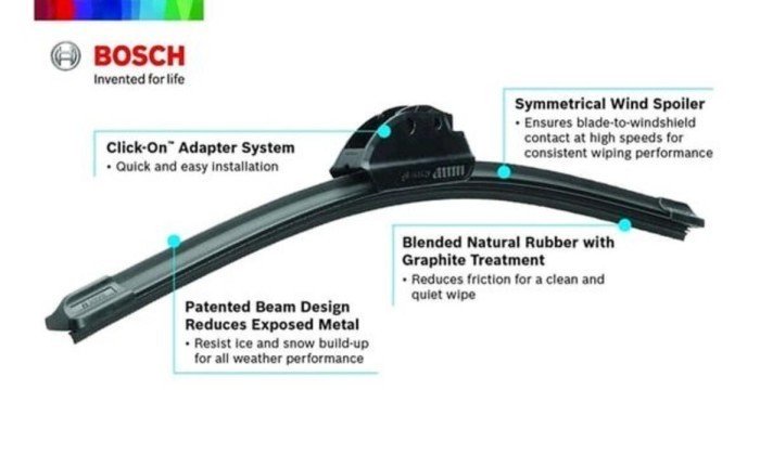 – Stabilitas, performa stabil dan senyap desain full frame acrodinamis dan tahan terhadap angin kencang pada kecepatan tinggi, sehingga meningkatkan stabilitas performa wiper.