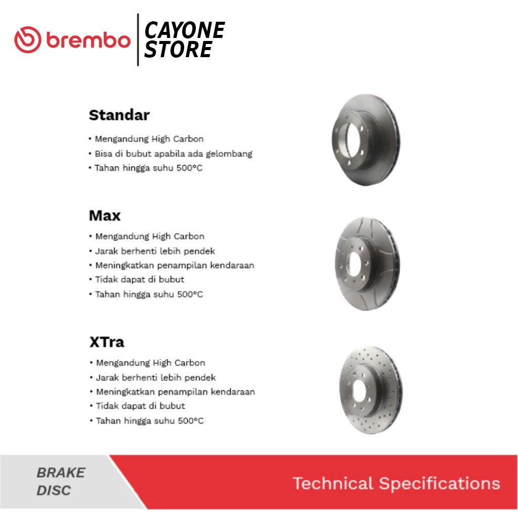 Brembo Brake Disc adalah cakram rem berkualitas tinggi yang dirancang dan diproduksi oleh Brembo, produsen sistem pengereman terkemuka dunia asal Italia. Produk ini dirancang untuk memberikan performa pengereman optimal, keamanan maksimum, dan kenyamanan berkendara baik untuk kendaraan harian maupun kendaraan performa tinggi. Brembo menawarkan berbagai tipe cakram rem, seperti solid disc, ventilated disc, drilled (berlubang), dan slotted (beralur) sesuai kebutuhan dan gaya berkendara.
