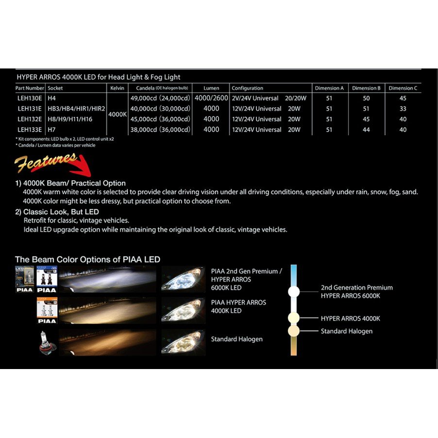 PIAA Hyper Arros LED All Weather LEH132E H8 H9 H11 H16 4000K.