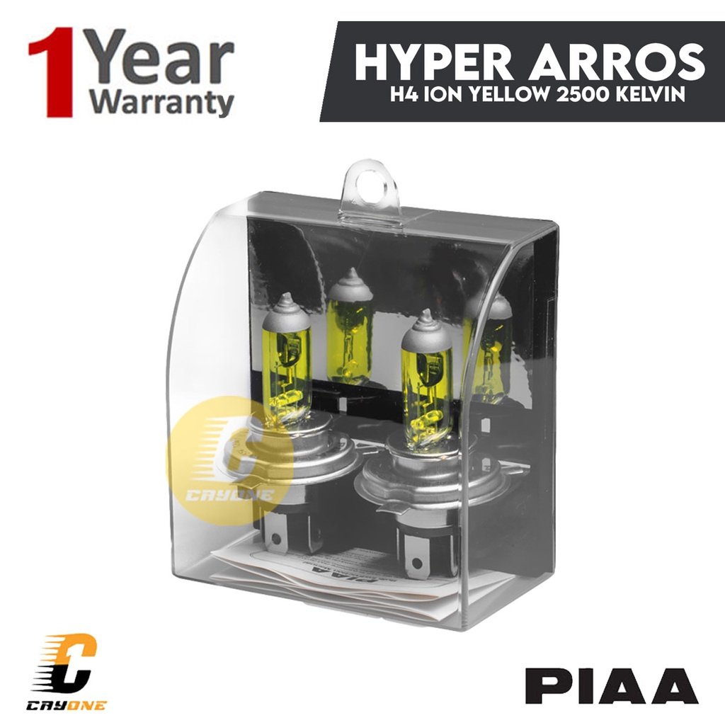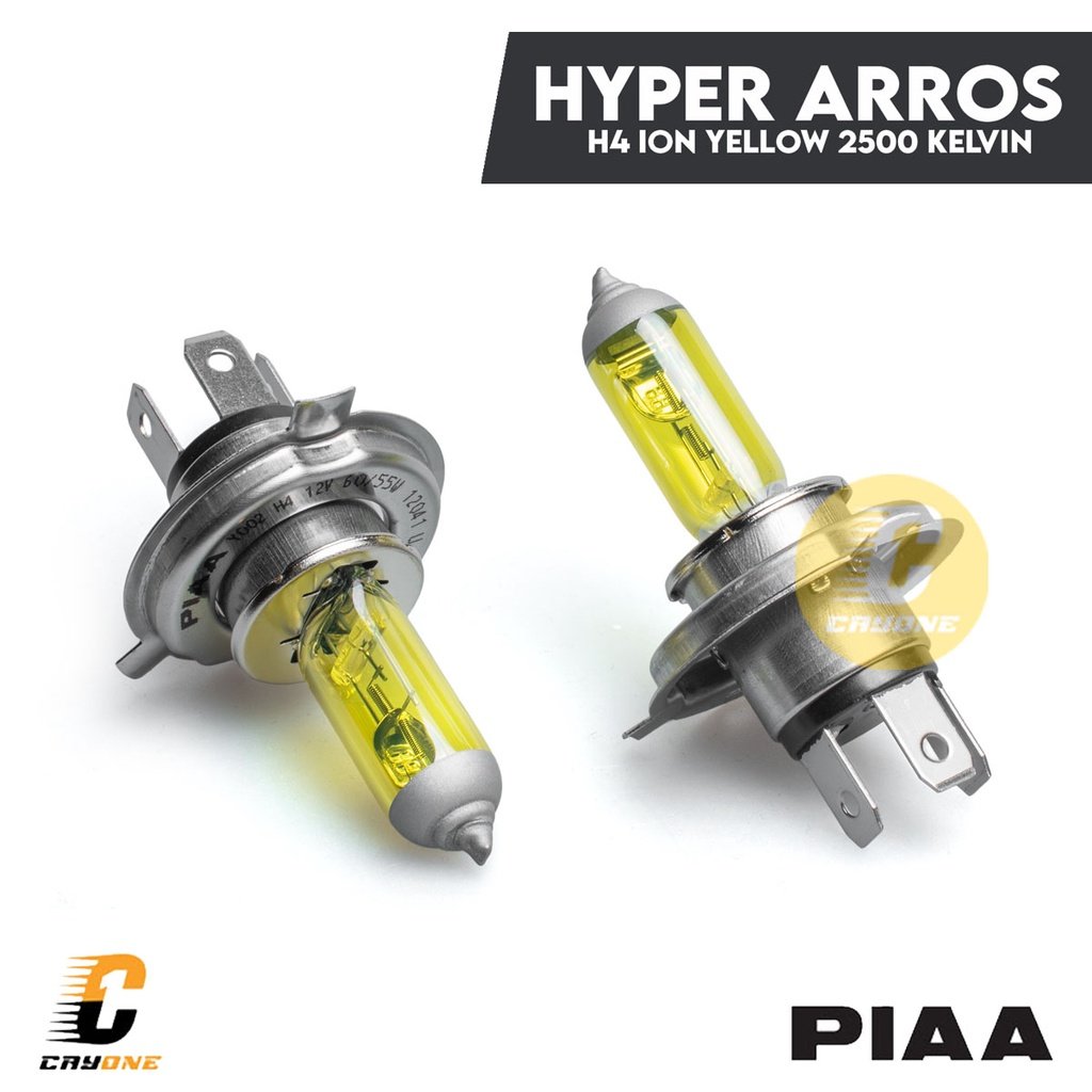Hyper Arros Ion Yellow merupakan lampu yang dikembangkan jauh lebih unggul, menembus pandangan dibandingkan lampu standar, dengan berbagai elemen alam baik itu hujan, kabut, salju, atau bahkan pasir. Apapun cuacanya, cahaya kuning terang dari Hyper Arros Ion Yellow PIAA akan membuat pandangan Anda tetap jelas dan baik. Dengan suhu lampu yang tidak terlalu tinggi ini masih sangat berguna untuk kondisi cuaca buruk dan penggunaan sehari-hari.