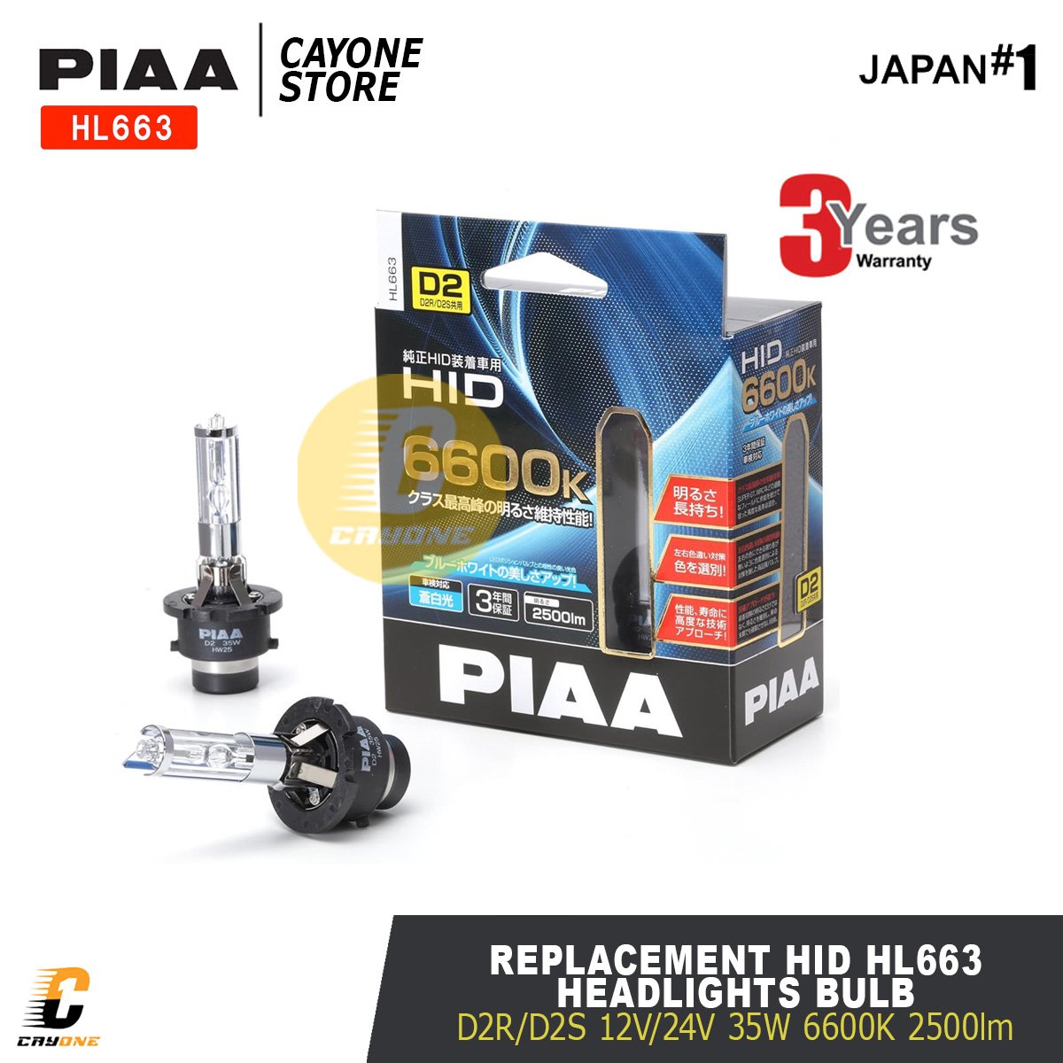 PIAA HL663 adalah bohlam pengganti HID original untuk lampu depan mobil dengan kualitas premium dari Jepang. Dirancang untuk menghasilkan cahaya putih biru terang 6600K dengan intensitas 2500 lumeni, meningkatkan visibilitas saat berkendara di malam hari. Kompatibel untuk socket D2R/D2S, dapat digunakan pada mobil dengan sistem listrik 12V maupun 24V.