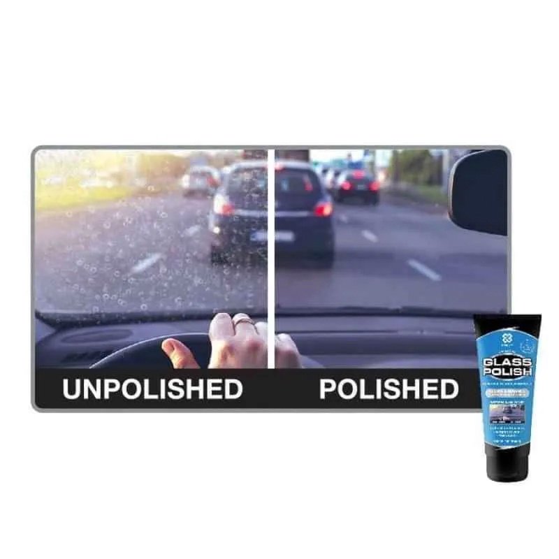 GLASS POLISH adalah Formula cream permbersih dengan surfaktan khusus, agen mikroabrasi, tanpa solvent yang berbau menyengat. Menghilangkan kerak air, oksidasi, asap knalpot dari permukaan kaca mobil,rumah, pabrik & kapal