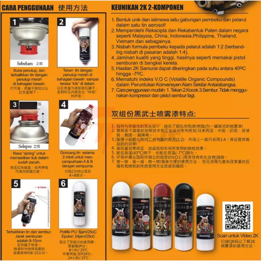 2K Series dengan teknologi baru yang menggabungkan cat semprot dan hardener yang membuat warna motor anda bertahan lama dengan lapisan anti-retak dan anti-bensin!