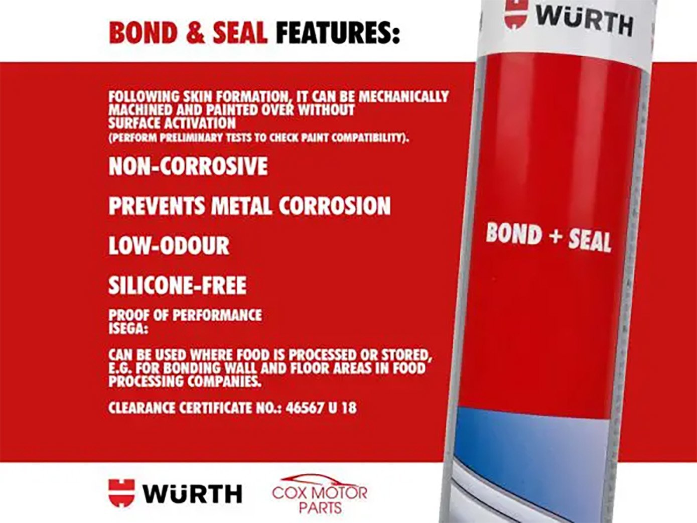 Würth Bond + Seal Structural Adhesive adalah perekat struktural berkualitas tinggi yang dirancang untuk penggunaan di iklim tropis. Produk ini memiliki daya rekat yang kuat dan fungsi penyegelan, cocok untuk berbagai material dan aplikasi industri atau otomotif.