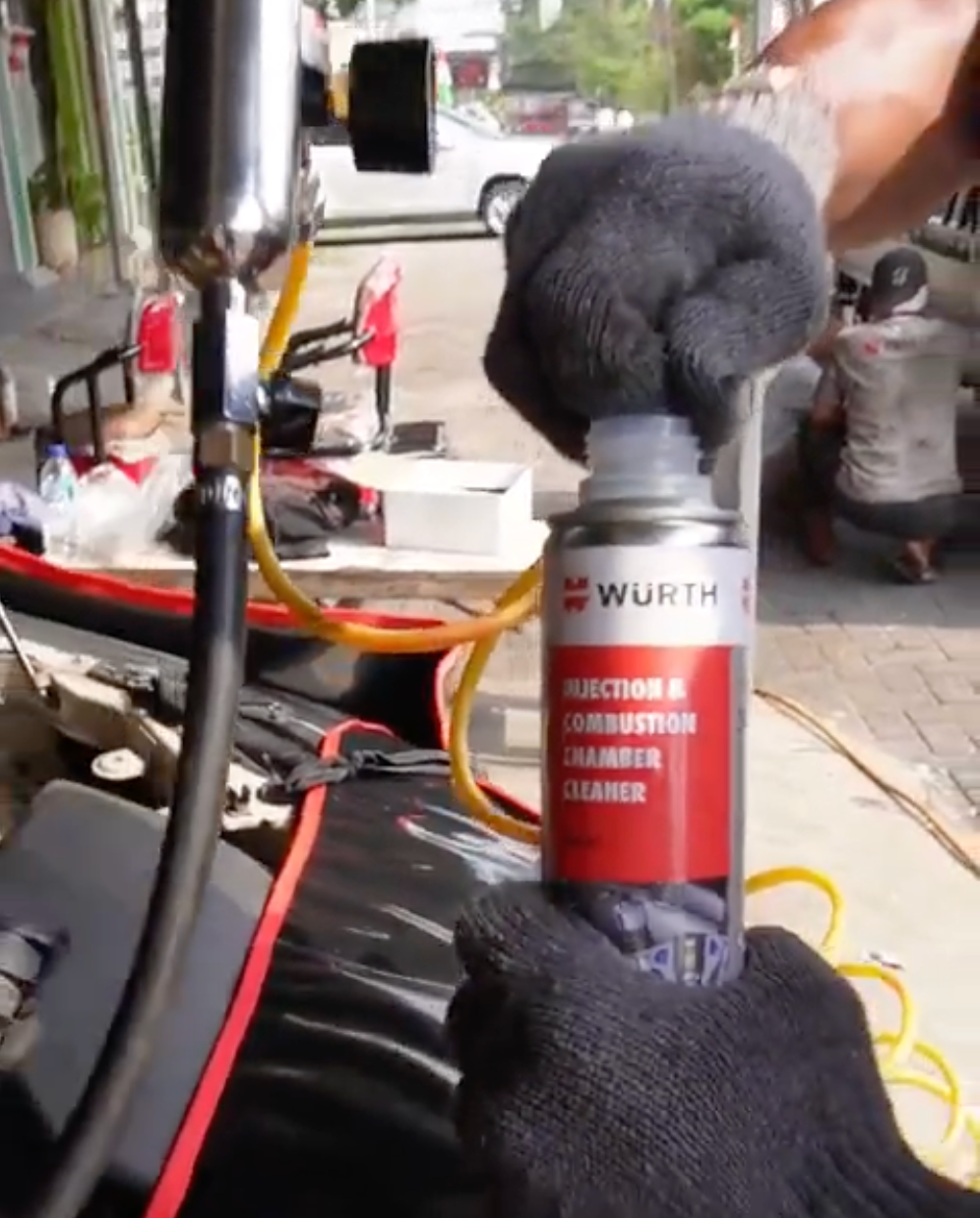 Wurth Injector & Combustion Chamber Cleaner Petrol dengan dibantu oleh alat injection cleaner (dijual terpisah) yang dibantu angin dari kompresor, cairan ini menggantikan fungsi bahan bakar secara sementara yg akan membersihkan kerak pada injektor, proses ini memakan waktu kurang lebih 15 – 20 menit menggunakan tekanan angin 3 Bar.
